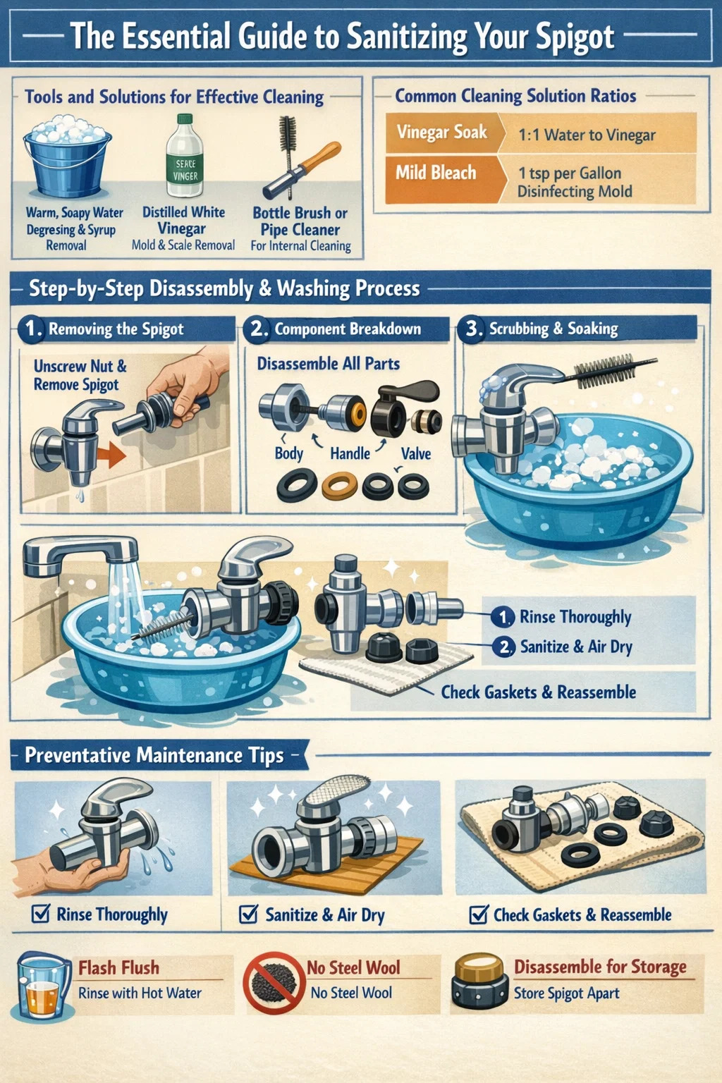 食品の安全性を維持し、有害な細菌の増殖を防ぐために、 飲料ディスペンサーの差し込み口 使用後は毎回徹底的に掃除する必要があります または、普通の水に使用する場合は少なくとも週に 1 回。栓の内部には複雑な溝があるため、外側をすすぐだけでは不十分です。 完全な分解が必要です ベタベタした砂糖の残留物や、暗く湿った環境で繁殖するカビの胞子を除去します。
