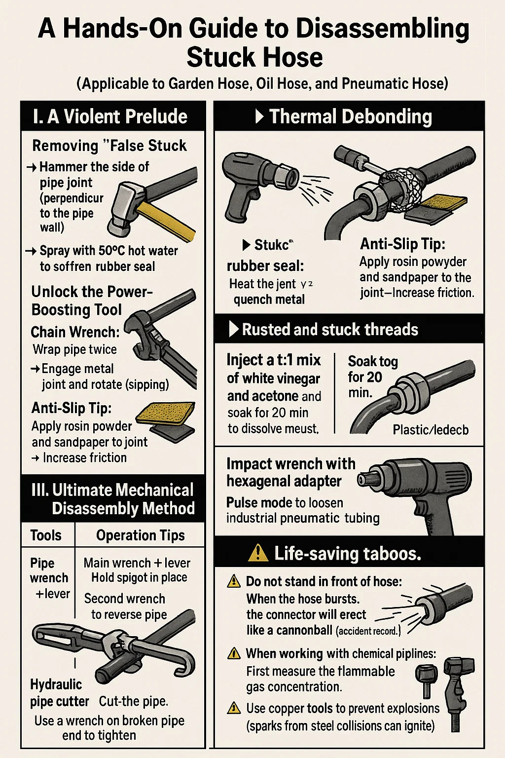 油圧パイプカッター | サーバーホース → 切断端をレンチドライブに挟み込む → 切り株を利用して回転させる | プラスチック/ゴムホース | フィッティングから 2 インチをカット – グリップ面を最大化 |